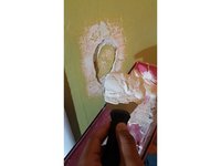 Sand down the hole and the area surrounding. This is in order to get paint off the wall.