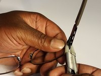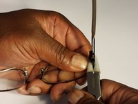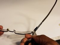 Place eyewear pliers in between the template and the front of the frame. Slowly bend template towards the lens as much as needed to fit snugly on head.