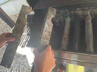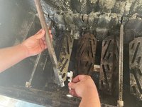 In step 5, you will be removing the ignition device from the burner using a metal wedge. The ignition device is connected to the grill by a wire, so take special care to not strip or damage the wire while removing the device.