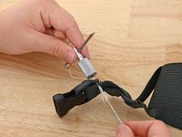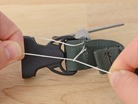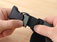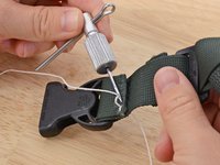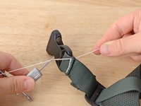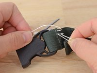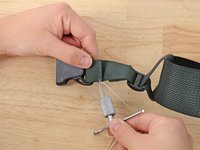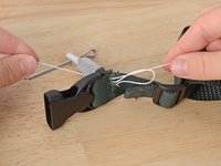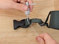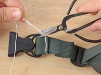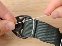 Align your material. In this case we are resewing the webbing holding a buckle in place.