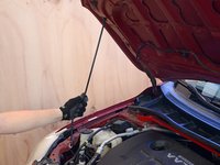 Lift one end of the prop rod up or out to release it from the front area of the engine bay.