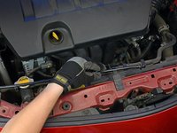 Raise the hood by simultaneously lifting and pressing the hood latch release. It is usually a paddle located beneath the front edge of the hood, near the center or center-right.