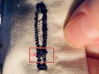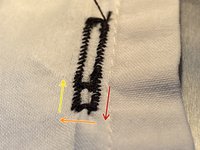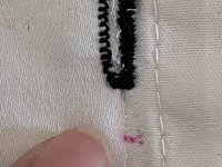 Match the stitch width of the existing bar tack, and sew a new bar tack at the location of your chalk mark.