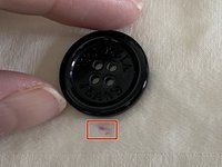 Very near the place where your button was originally sewn on, center your button in your adjusted buttonhole. Using chalk or a pin, mark this location.