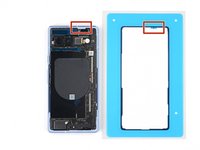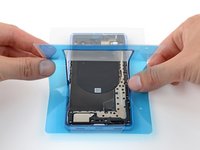 Place the adhesive onto the logic board cover, just below the rear cameras.