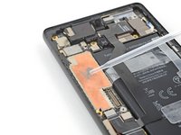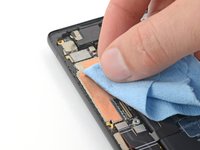 Use the flat end of a spudger to scrape away large pieces of old thermal paste from your phone's motherboard.