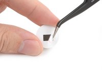Use tweezers to peel off a portion of pre-cut adhesive.