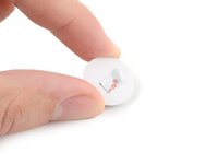 Press down on the adhesive to ensure it's fully adhered to the eye.