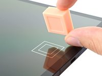 Place the side of the small white box with the grooves over the inner portion of the outline near the bottom of the screen.