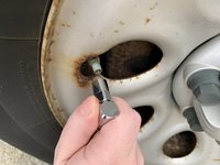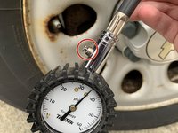 After a second or two, remove the tire pressure gauge. Again, you'll hear a brief hissing noise.