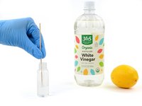 Lightly dip a cotton swab in white vinegar or lemon juice.