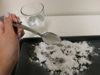 Cover the stained part of the baking sheet with a thin layer of baking soda.