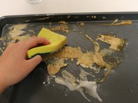 Tip: This method works best if you clean the stained baking sheet as soon as it has cooled after use.