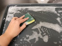 Rinse off the baking soda and wash the baking sheet again with soap and water.