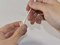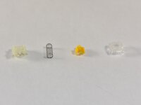 Identify the various switch components and the order of construction (from left to right or bottom to top): bottom housing, spring, stem, top housing. Separate them from the switch.