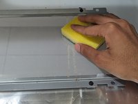 Use the sponge to clean the glass with a soap solution and soft clean cloth to wipe the glass off.
