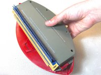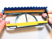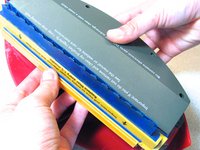Using your other hand, grab the yellow tab and pull it away from the back piece.