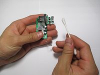 Take a cotton swab and lightly remove any dirt or debris around the pin connections of the scroll wheel.