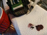 Fill the syringe with distilled water and spray the small holes on the print-head. Use the cotton swabs to scrub and clean the crevices.