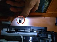 After removing the seven screws, loosen the lever from the scanner compartment.