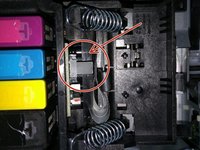 When reassembling the print-head, ensure the black lint is under the black connector (see photo). If the blink lint is above the connector, you will receive a "wagon error" code. The wagon will essentially hit the right side of the printer, unable to go tot he left side.