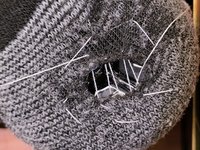 Weave the extra thread into the sock's fabric, then cut the needle away from the thread.