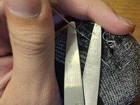 Start a stitch from one side of the hole, about ½” to ⅛” away. Connect one side of the hole to the other using the thread.