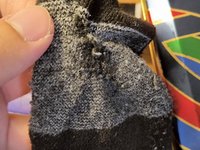Darning a hole in a sock provides a different outcome than simply sewing up the hole. When you darn a sock, it acts as a replacement for the missing fabric. So, if you have suitable thread types, you can create cool patchwork socks.
