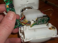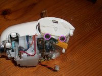 lift motherboard up from housing, you may have to bend fuse (that was soldered to battery contact) slightly to allow movement. Be careful as it is still attached to jack and motor.