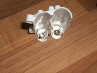 The removed battery compartment. You will need to use a sharp blade to cut along joins to fully access battery contacts for a thorough clean.