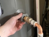 To begin draining your water heater, open up the drain valve by rotating the knob counter-clockwise.