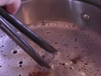 Add the desired amount of dye that was measured via the bottle to the water and turn the stove top temperature to simmer.