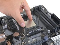 Lower the CPU into the socket, ensuring that all pins fall into their matching holes.