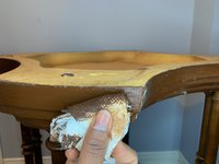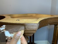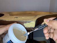 • Apply a generous amount of wood filler to the chipped wood and let it harden completely before continuing with the remaining steps.