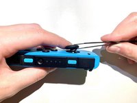 Press and hold the black round button on the back of the Joy-Con, then slide it forward to remove.