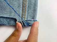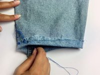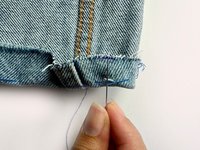 Poke the needle through the jean.