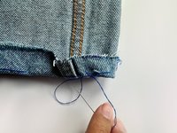 Cut a piece of thread twice the length of the jean cuff.