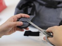 Note: After cleaning the area, use the seam ripper to open the seam of the thick padding, leaving a hole for the strap piece to be reinserted later.