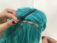 Sew the weft in at each of the non-elastic bands of the wig in the damaged area.