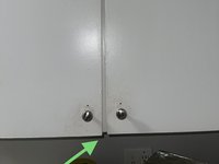Examine which door needs to be adjusted and to what extent. In this example, we start the adjustment with the lower screws of the cabinet door.