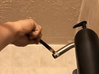 Wrap Teflon tape around the legs of the spout about 3 times to ensure that it will screw on tight when the head is put back on.