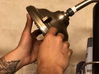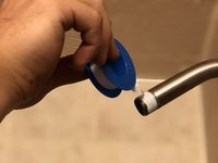Using your fingertips press a new 1" black rubber washer into the head attachment. The new washer will allow water to flow correctly with more pressure.