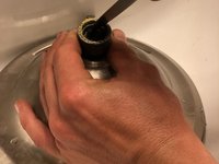 With the tip of a pocketknife, pick out the rubber, black washer in the attachment.