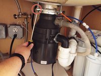 The disposal will drop down—be sure to catch the disposal and place on the bottom of the sink.