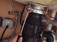 Remove the three screws from the flange at the top of the garbage disposal unit. These screws are at the top right above the black disposal box.
