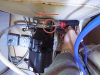 Use the screwdriver to turn the locking ring counter clock-wise, disengaging the drain hose and disposal.