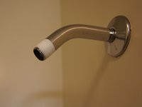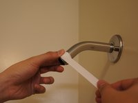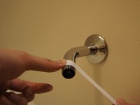 Place and hold one end of the tape on the threads at the end of the shower arm (the pipe coming out of the wall).