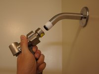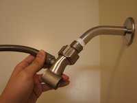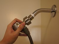 Place the wrench on the shower head mount. Adjust the wrench to fit tightly on the mount.
