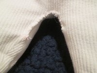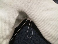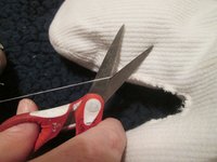 After the rip is sewn shut, tie the end of the thread by creating a knot