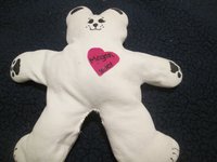 Use Polyester Fiberfill stuffing to fill the stuffed bear via rip. Add more stuffing for a firmer toy.